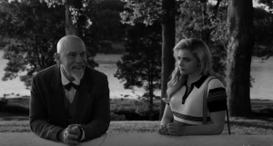 Let’s get this out of the way, however. I Love You, Daddy features a guy who’s done horrific things, but it is still far from a horrific movie. There is some good here, beginning with the black-and-white styled employed by C.K., paying homage to works done by Woody Allen (Manhattan, particularly) and Stanley Kubrick’s Lolita. While Louis’ editing as it pertains to telling a coherent story can be problematic at times, within scenes, his camera work can be quite good and steady accompanied by a old-school orchestral score. The cast featuring names like Byrne, Adlon, Moretz, Charlie Day, and Malkovich make for a solidly acted production with the writing for their characters that is given, with Byrne and Moretz turning in the best work and managing to hold interest.