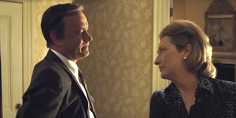 Opportunity does knock, however, when secrets regarding the US Government’s stance on the Vietnam War are leaked initially via the New York Times by way of the “Pentagon Papers.” Government is none too happy about it, and chooses to shut down the story before it gets too in-depth. They’re threatening criminal action if anyone else decides to run with it, but this is something that the American populace needs to know. Commence the battle between free press and the government.