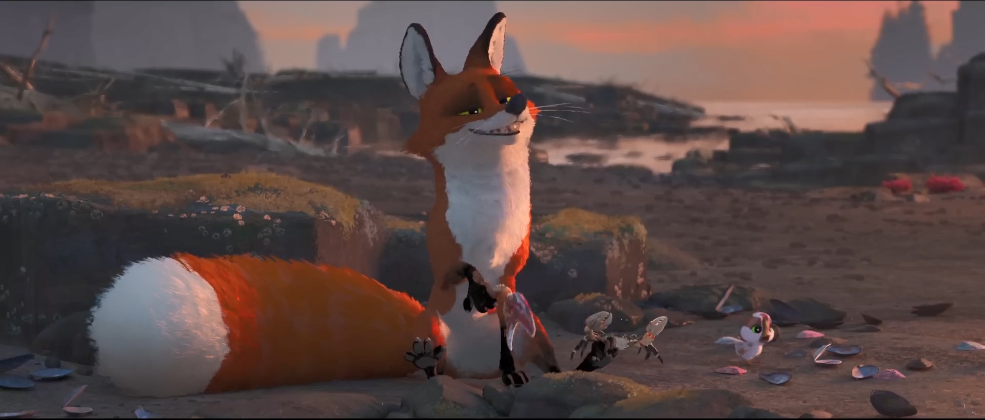 Her situation is about to change. After a chase through the island, “Roz” discovers a single unhatched goose egg. Some time later, it hatches, and the goose known as “Brightbill” (Kit Connor) immediately sees the non-animal as its mother. Unsure of what specifically to do, a possum, Pinktail (Catherine O’Hara) shares that the baby goose must learn to swim and fly to migrate before the cold winter comes. And so, Roz has a defined objective. With the help of true neutral fox Fink (Pedro Pascal), Roz begins to discover there’s more to her existence than what her code dictates.