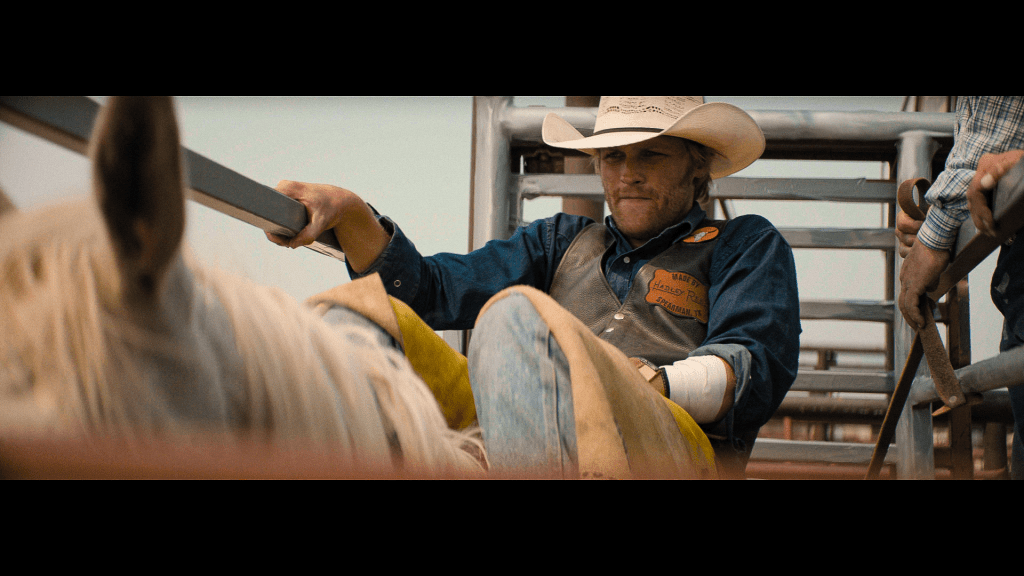 After partnering with director brother William Eubank on writing and set construction across films, the younger Carlyle gets his opportunity to direct one for the first time. It doesn’t take too long too to see the passion and authenticity he has and brings into this world, shooting in Montana across the seasons and using real rodeos and the energy imbued in those to intersplice the action scenes. Editing is as much of a strength here as directing is, as the work of Glenn Garland is paramount to understanding the sublime aspects, but mostly violent and taxing physical demands of bronc riding.